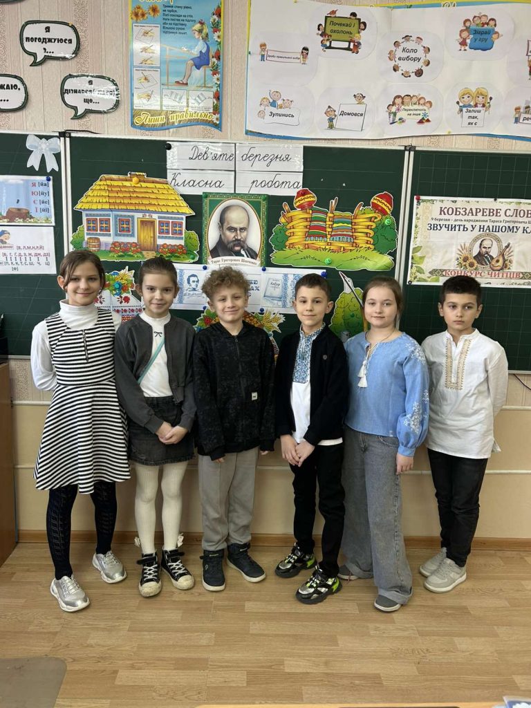 До Дня народження Тараса Шевченка серед учнів 4-А та 4-В класів відбувся конкурс читців його поезії. Учні з натхненням декламували відомі вірші поета, передаючи красу й силу українського слова. Діти старанно підготувалися, намагалися виразно й емоційно передати зміст творів. Конкурс пройшов у теплій та дружній атмосфері. Підготували і провели захід класні керівники Тетяна Лактіонова та Юлія Босенко.