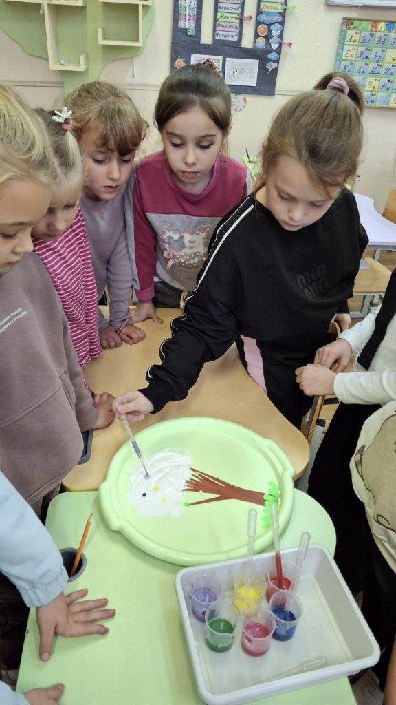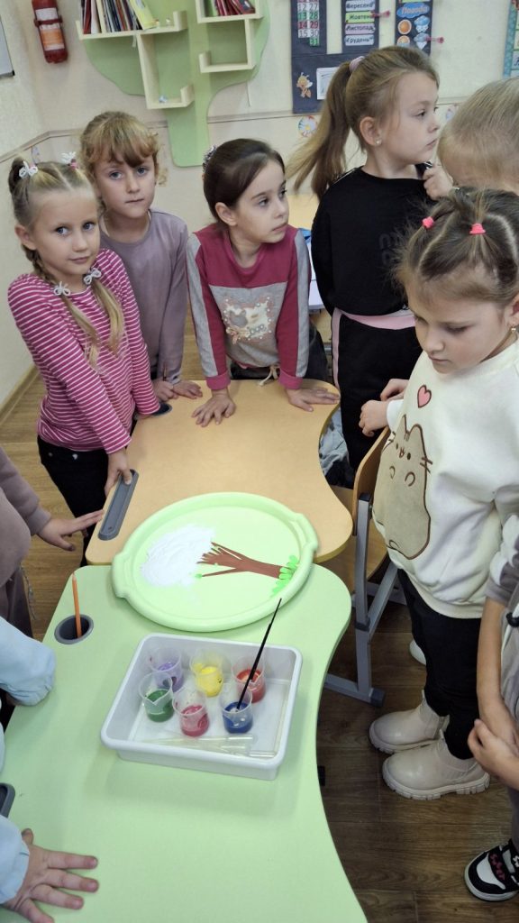 Діти разом обговорили, що таке емоції, чому важливо їх розуміти та вміти висловлювати. Учні ділилися, коли відчувають радість, сум, здивування чи гордість, а потім за допомогою фарб відтворили ці почуття на папері, створивши яскраве, неповторне Дерево емоцій.