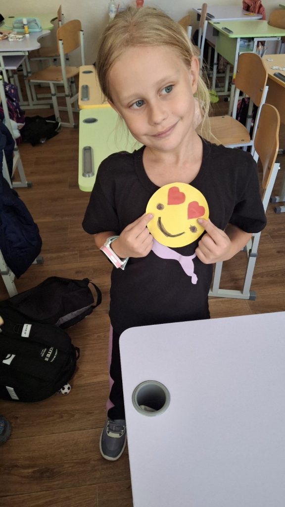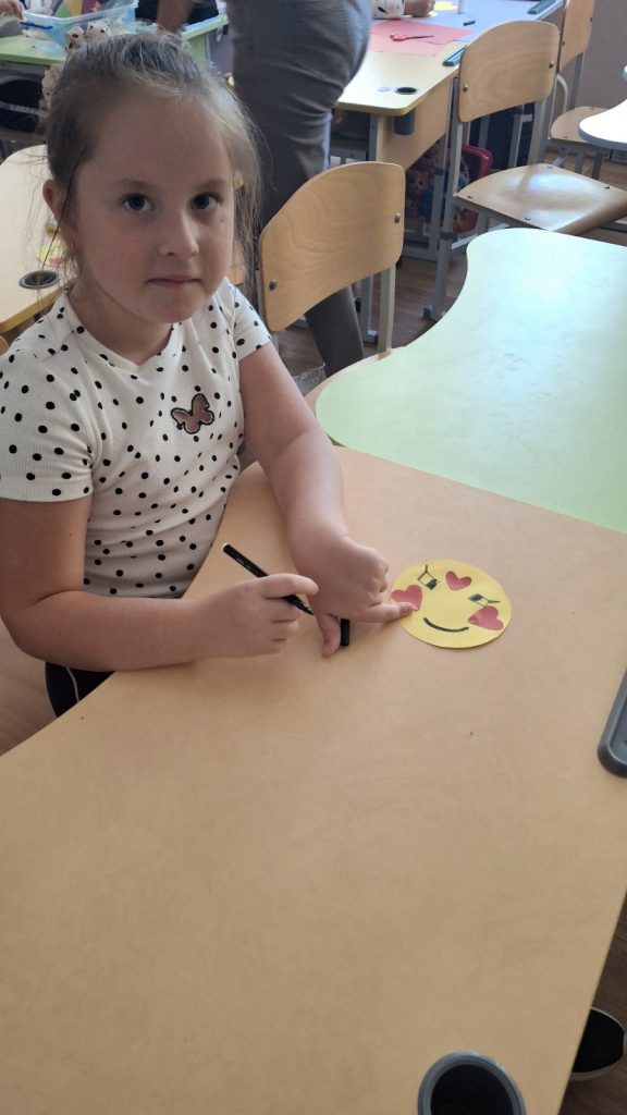 Вихователь ГПД Оксана Колос провела для дітей цікаве та веселе заняття. Малята дізналися про історію виникнення смайлика, його значення у спілкуванні та позитивний настрій, який він дарує. Після цього власноруч виготовили креативні смайлики з паперу. Кожен дитячий смайлик вийшов неповторним і яскравим – відображав настрій та фантазію автора.