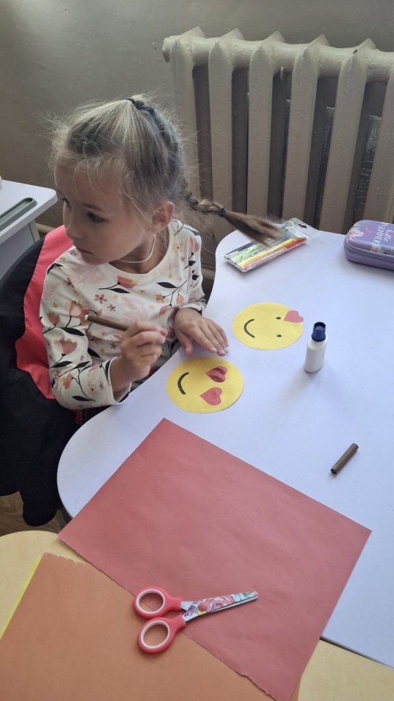 Після цього власноруч виготовили креативні смайлики з паперу. Кожен дитячий смайлик вийшов неповторним і яскравим – відображав настрій та фантазію автора.